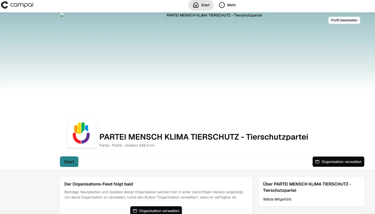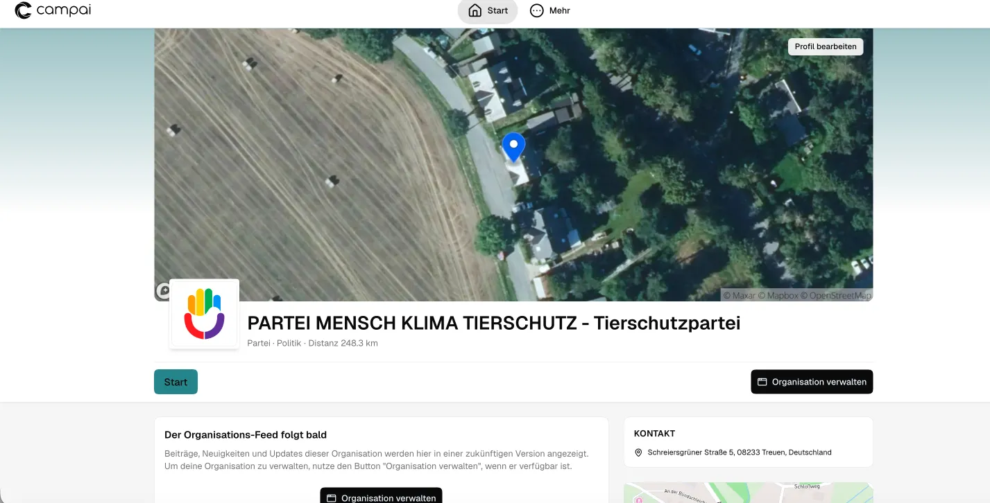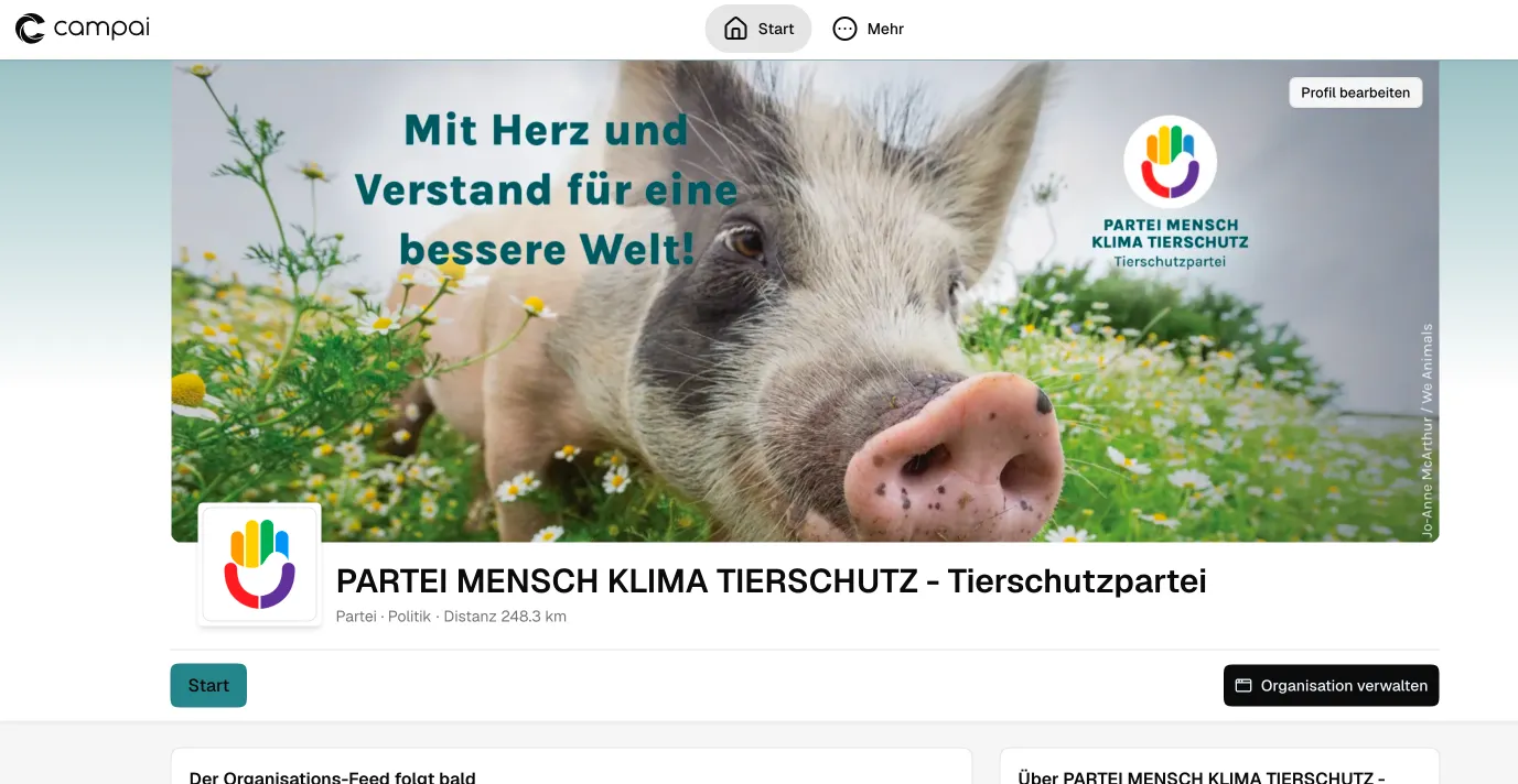 ehrlich gesagt hier oben rechts über den kaputten Support-Link, wo man dann auf https://app.campai.com/user/home kommt – und dann dort die Orga anklicken. 😄
