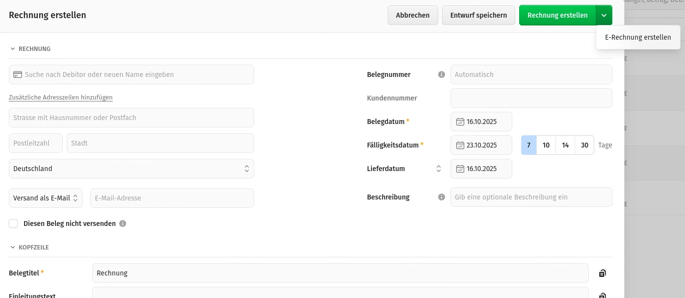 Ist das bereits implementiert? Wo kann ich erkennen, ob wir E-Rechnungen erstellen (können)?