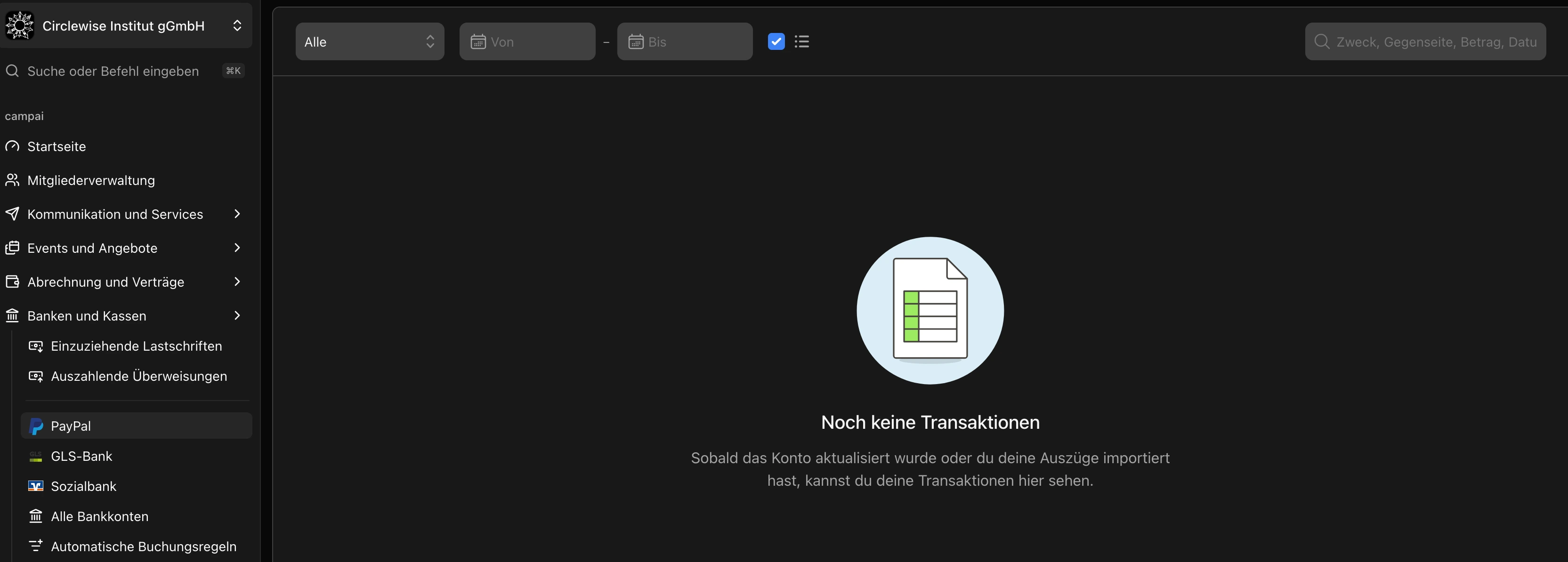 ABER: Campai zieht nur die Zahlungsumsätze, nicht den dazugehörigen Ausgleich. Wenn ich mich in PayPal anmelde, muss ich die Transaktion aufklappen, um die Ausgleichszahlung zu sehen. Sie ist also da. Allerdings wird sie nicht von Campai übernommen, weshalb das Bankkonto in der Buchhaltung manuell ausgeglichen werden muss.