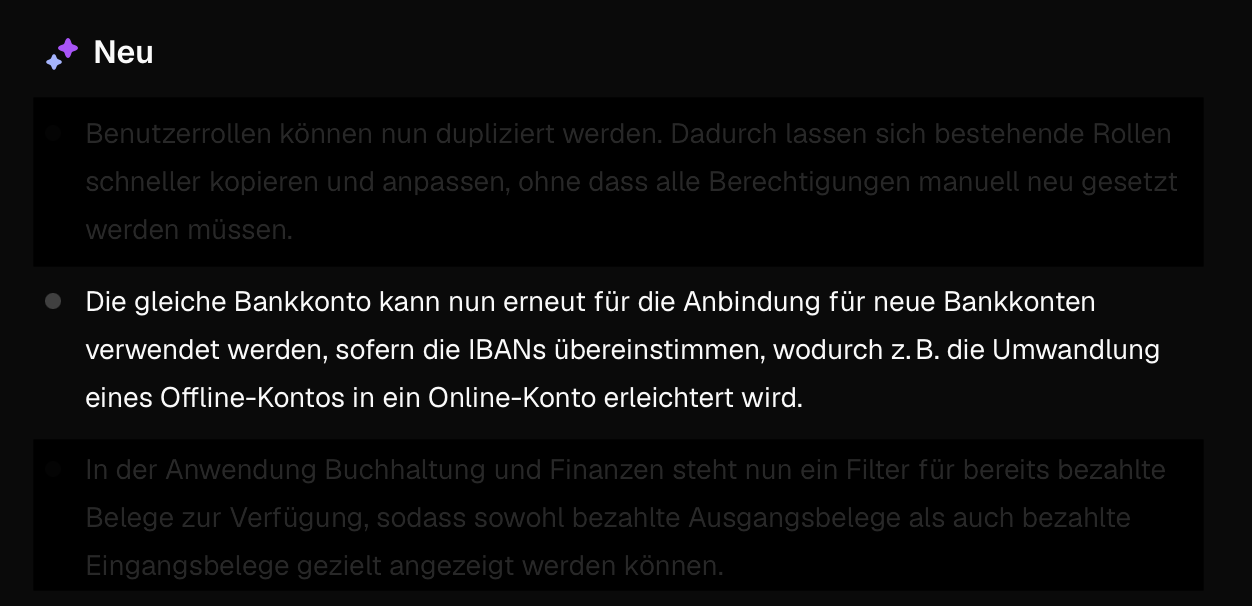 Insbesondere frage ich mich: wenn ich Mitgliedsbeiträge bereits als bezahlt markiert habe mit Kontoeinträgen vom bestehenden offline Konto - was passiert wenn ich das Konto lösche und die Einträge im neuen Online-Konto zuweisen will?