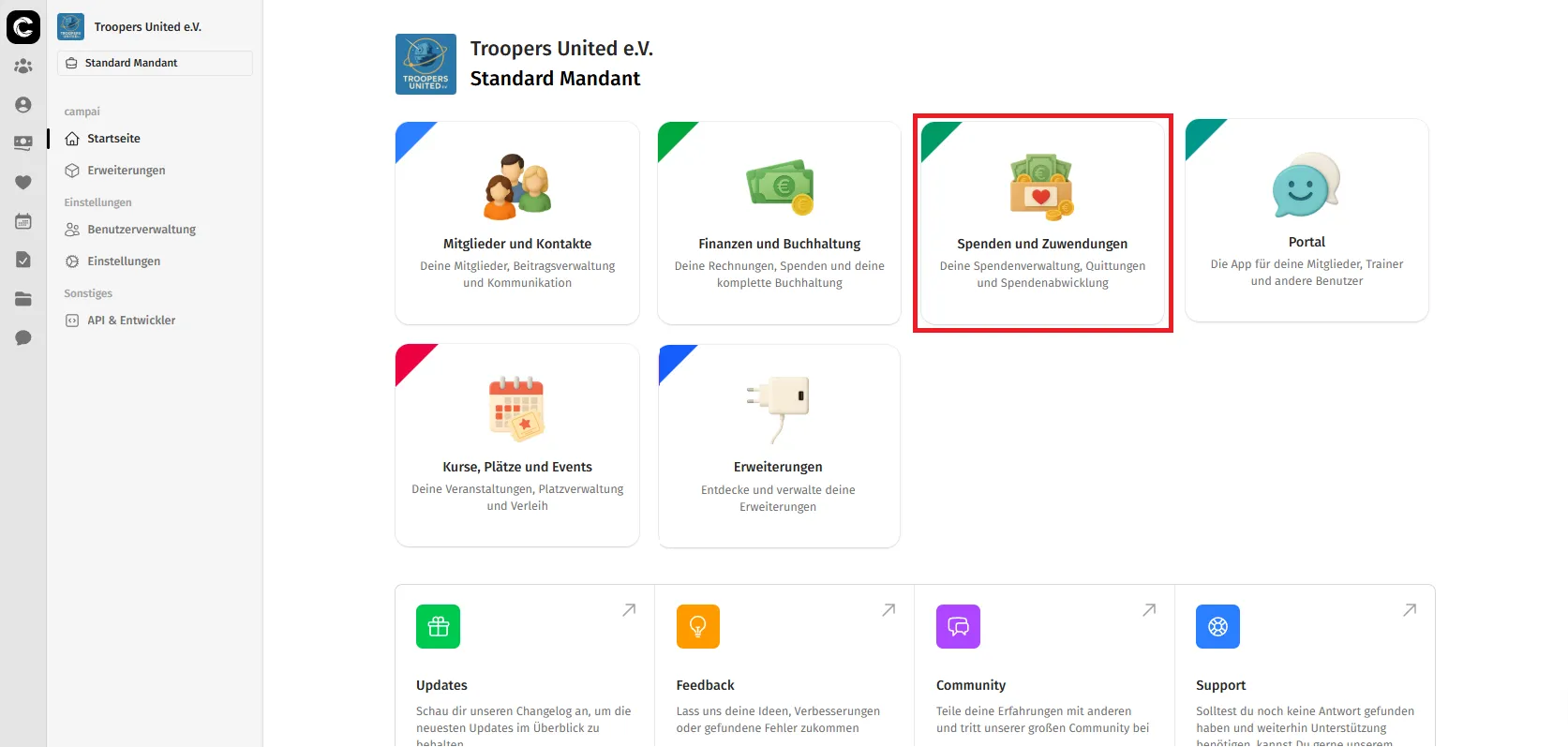 diese Funktionalität wird gerade in ein eigenes Spenden-Modul ausgelagert, das nächste Woche released werden soll.