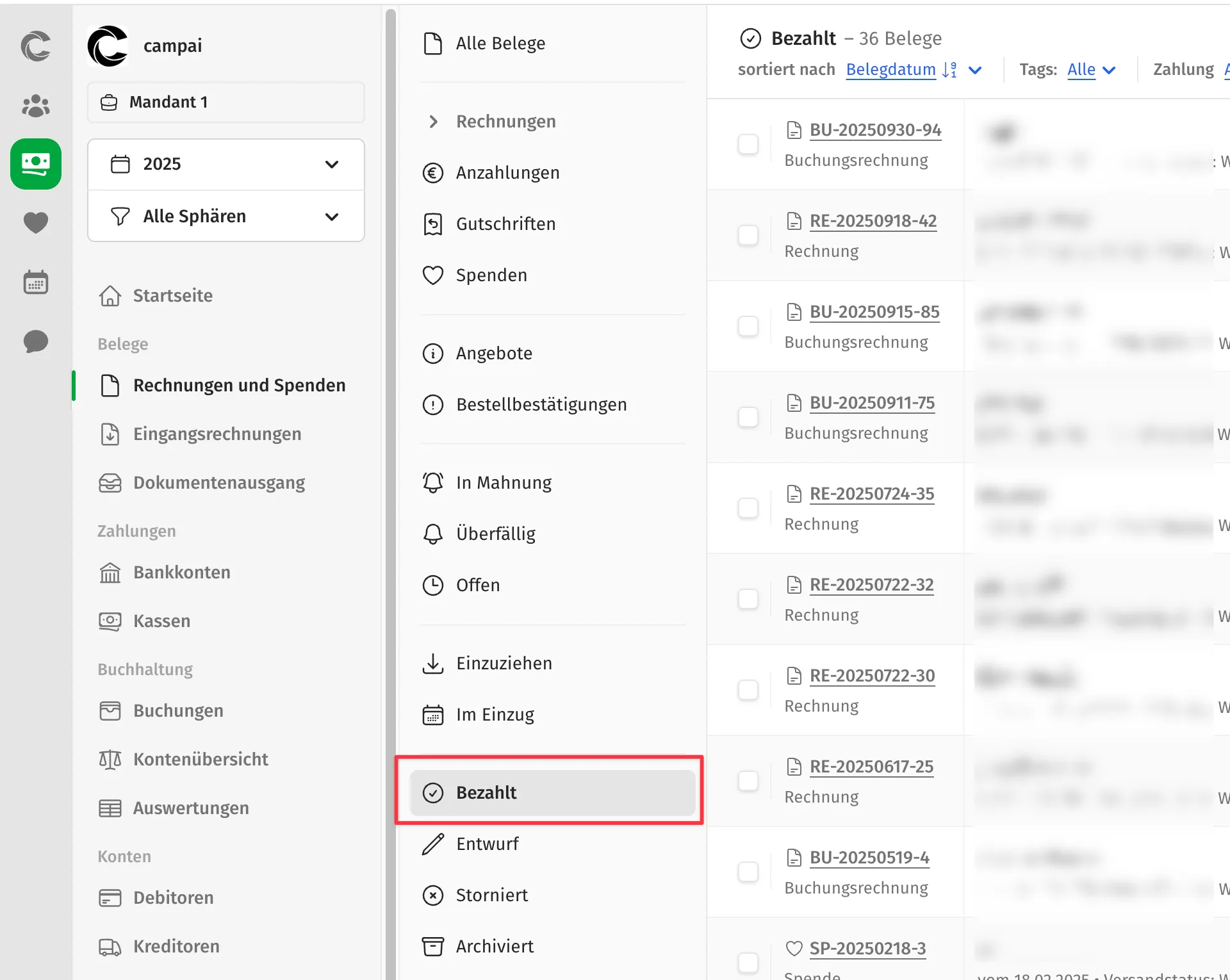 Alternativ ist es möglich, die Mahnungen manuell zu versenden. Dafür kannst du jede Rechnung überprüfen und einzeln versenden - Bezahlte Rechnungen: Eine Filtermöglichkeit nach bezahlten Rechnungen befindet sich gerade in der Entwicklung und wir zeitnah released. Du kannst bisher nach offenen, überfälligen und angemahnten Rechnungen filtern, was für einen Überblick über die Finanzen doch wichtiger sein sollte als die bezahlten Rechnungen