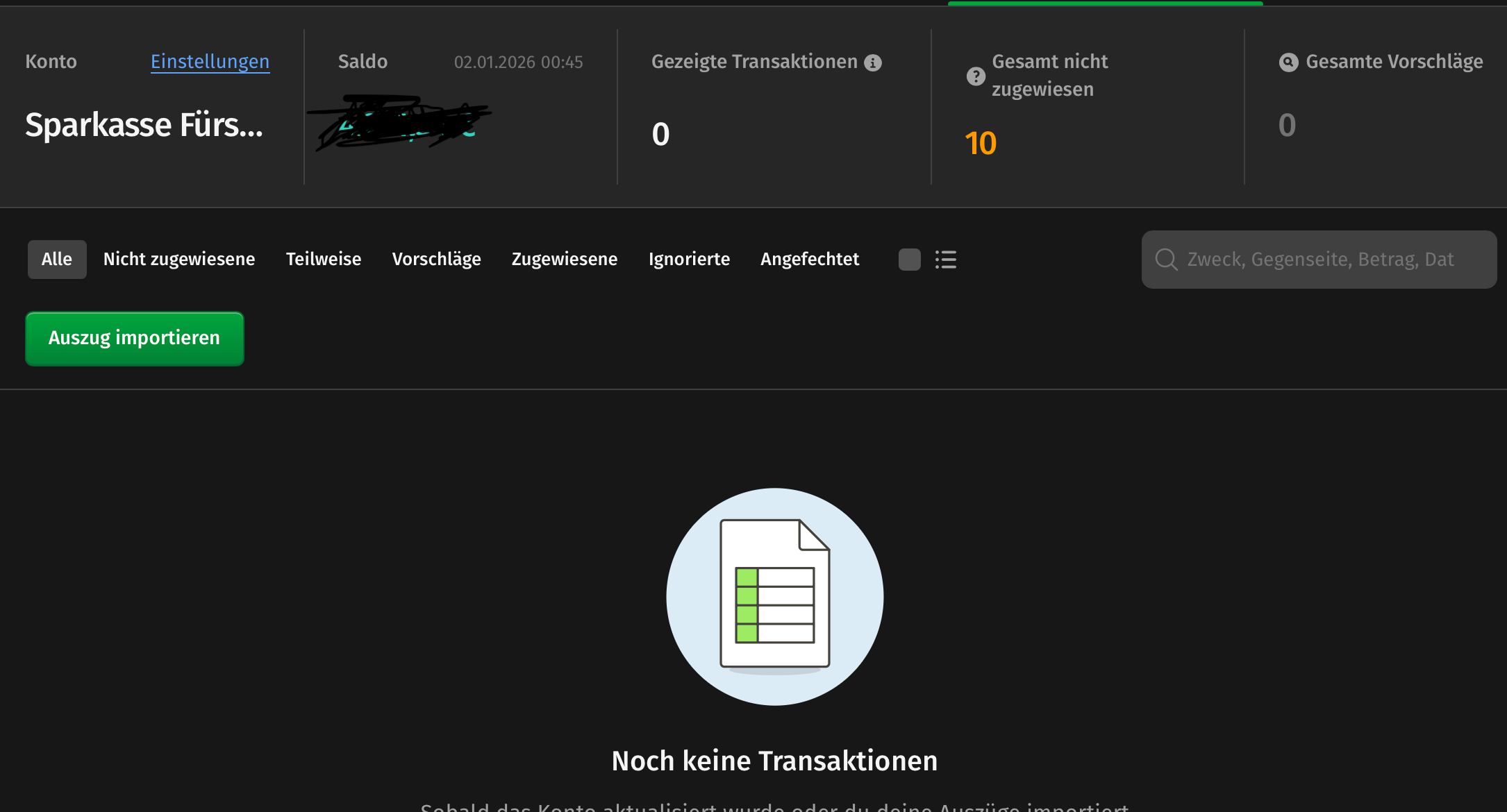 ich bin neu und habe heut testweise Buchungen hochgeladen. Ich sehe sie aber nicht in der Bank und kann sie somit auch nicht bearbeiten. Lediglich in der Bankübersicht (oben) sieht man das 4 nicht zugewiesenen Buchungen vorhanden sind aber ich kann diese nicht im unteren Bereich sehen. Den Browser habe ich schon mehrmals neu geladen.