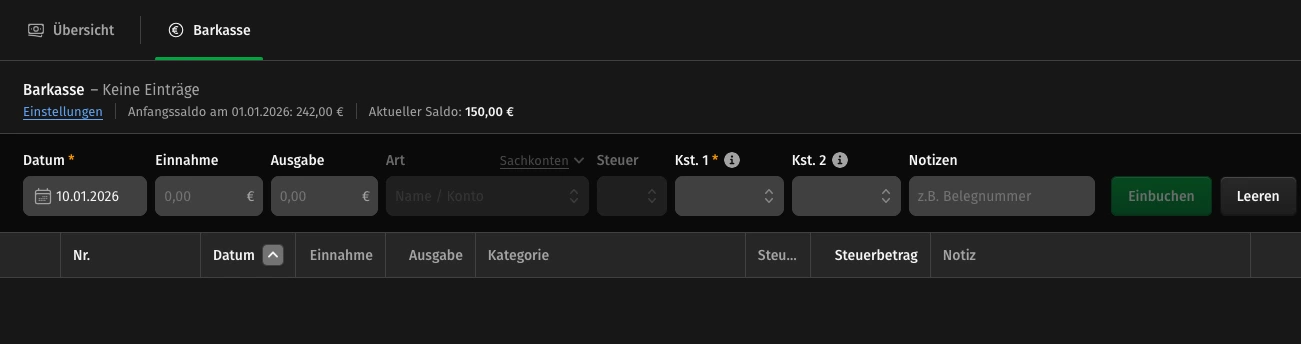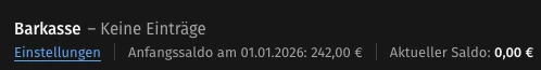 Die Kasse (Kto. 1600 0) hatte ich per 01.01.2025 mit 150€ eröffnet, als wir die Buchhaltung in Campai angefangen haben. Der Schlusssaldo per 31.12.2025 betrug 242€. In 2026 gab es noch keine Buchungen, allerdings habe ich jetzt folgenden komischen Zustand, wie aus dem angehängten Screenshot ersichtlich: Campai sagt, Anfangssaldo am 01.01.2026 wären die 242€ gewesen, aber der aktuelle Saldo betrage 150€.