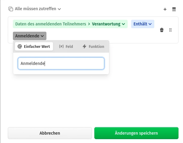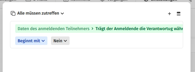 Mir ist nicht klar wie die Bedingungen angelegt werden. Was muss als Bedingung eingegeben werden? Es erscheinen nicht die zuvor angelegten Antwortmöglichkeiten (so kenne ich es aus YOLAWO) .