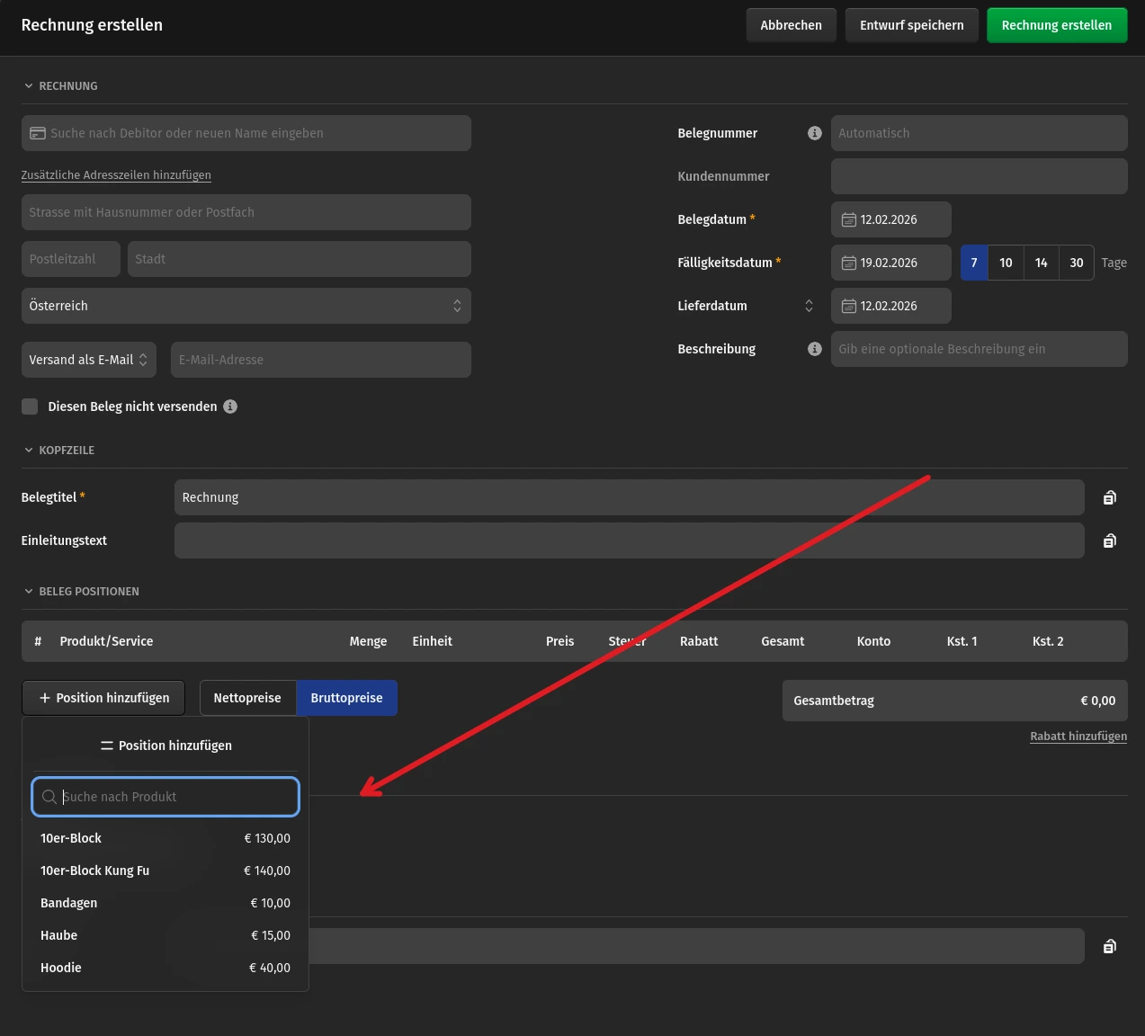 ein Produkt ist im Prinzip eine vordefinierte Rechnungsposition, die du dann beim Erstellen einer Rechnung auswählen kannst.