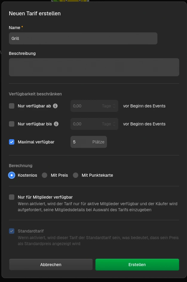 ich möchte aktuell ein Hilfe-Event erstellen und benötige Unterstützung bei der Konfiguration der Bedingungen bzw. Auswahloptionen. Konkret geht es darum, dass ich mehrere aus wählbare Optionen (z. B. Aufgabenbereiche wie Grill, Ausschank, Kasse etc.) anlegen möchte. Sobald eine Option von einer Person ausgewählt wurde (bzw. eine definierte Anzahl erreicht ist), soll diese Option für nachfolgende Teilnehmer automatisch nicht mehr zur Verfügung stehen.