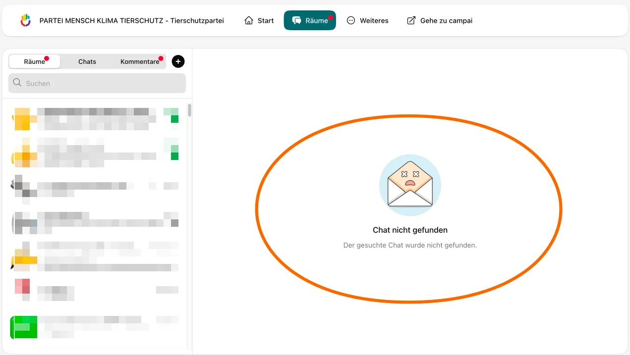 Es klappt aber, wenn du über Chats → + → Neuer Direktchat → suche des Kontakts gehst.