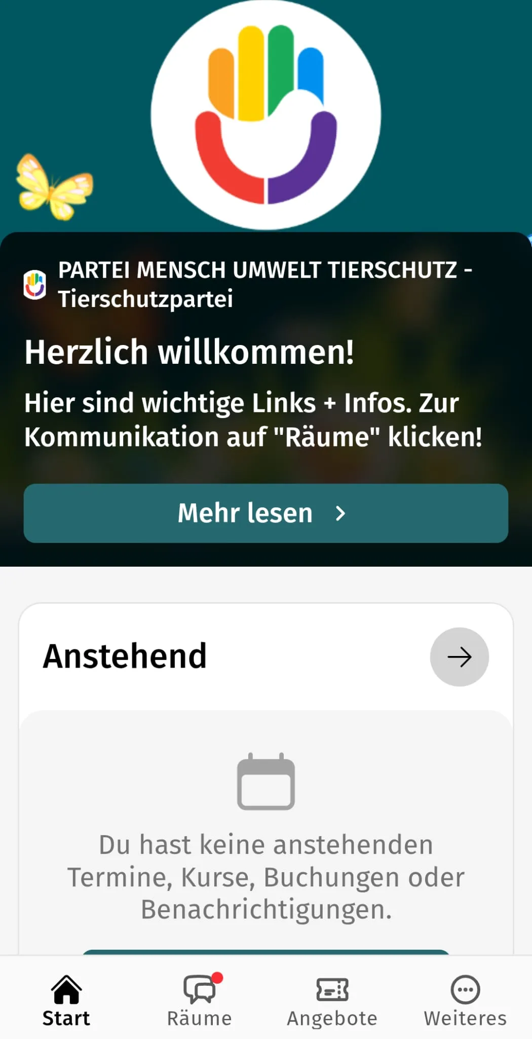 Ich ergänze noch mal: Wenn man keine Veranstaltungen nutzt, dann steht, wenn man die App öffnet, oben erst mal, dass es keine Veranstaltungen gibt (und man muss nach unten scrollen, um die Raum-Links überhaupt zu sehen.