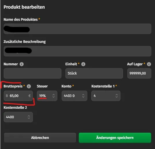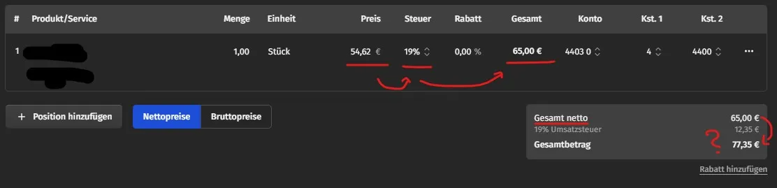Im Idealfall legst du zu Beginn der Rechnungserstellung fest, ob du mit Brutto- oder Nettopreisen arbeitest.