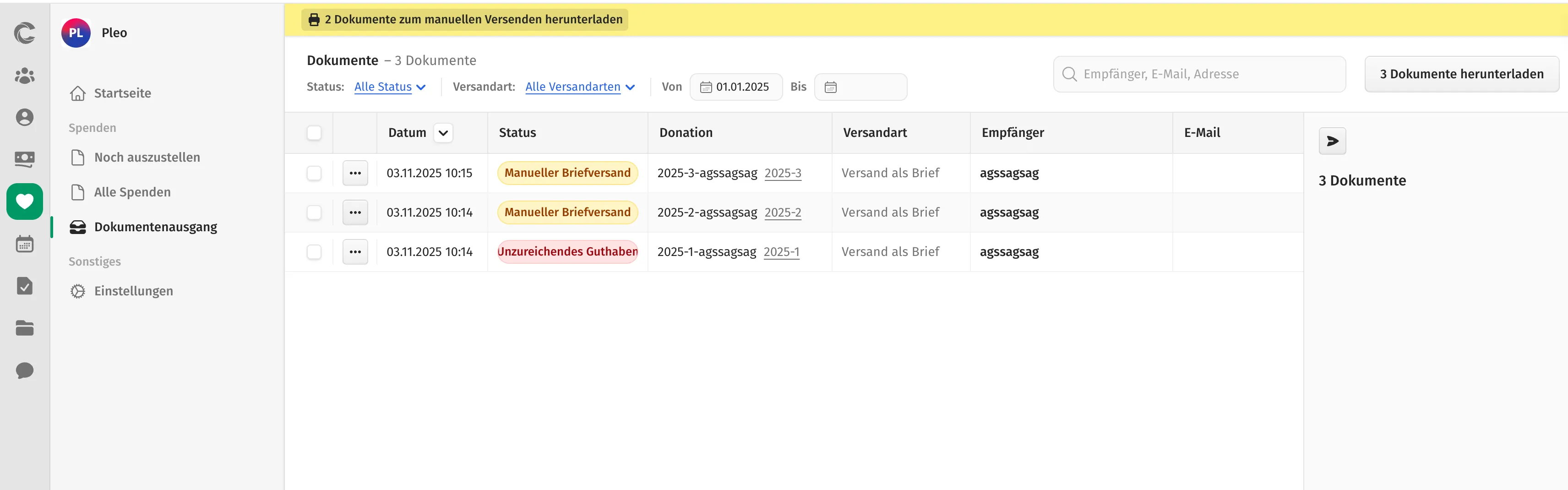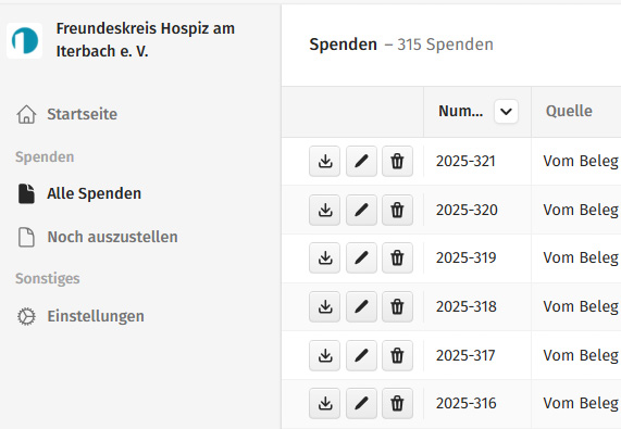 Am Ende des Jahres, wenn ich die Sammelspendenbescheinigungen für die Mitglieder erstelle, ist es sehr mühsam, jeden einzelnen Beleg herunterzuladen und auszudrucken. Danke für eure Bemühungen und freundliche Grüße