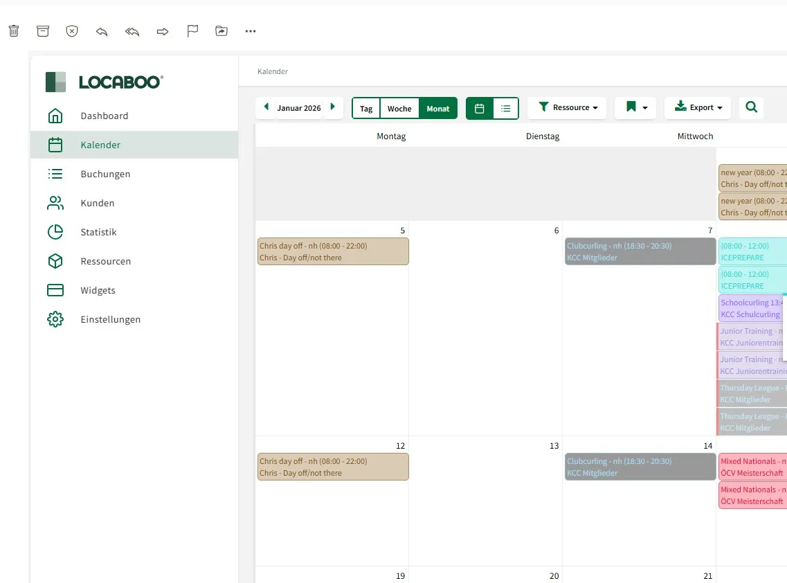Reservierungen - Gruppen (Mitglieder, Gästecurling, Kadertraining, Schülercurling etc) sollten Farben zuweisen werden könnte.