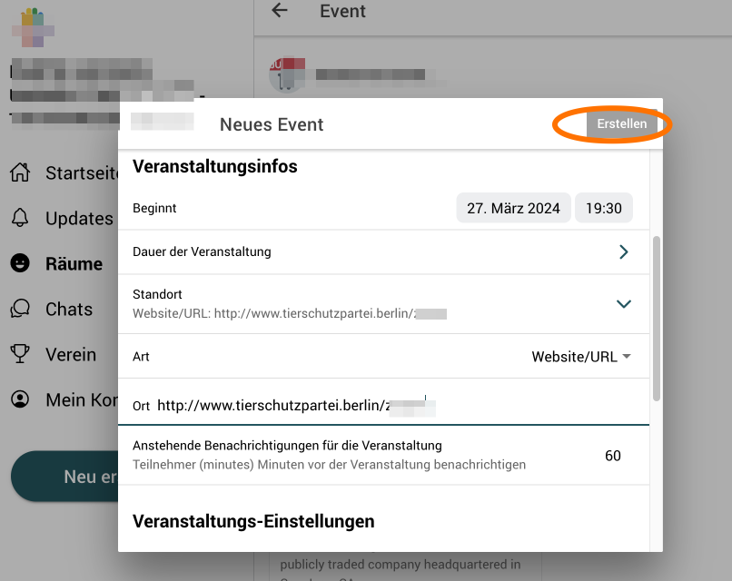Wenn ich eine Veranstaltung erstelle und als Ort / Art "Link/Url" eintrage möchte, lässt sich die Veranstaltung nicht speichern.