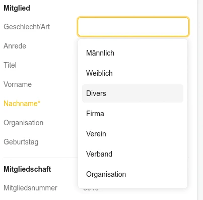 Da unsere Mitglieder juristische Person des öffentlichen Rechts (Städte, Gemeinden, Landkreise etc) sind und nicht die Personen, wäre es wichtig für uns nicht den Nachnamen bzw. generell nicht die Person als Mitglied zu führen, sondern die Organisation.