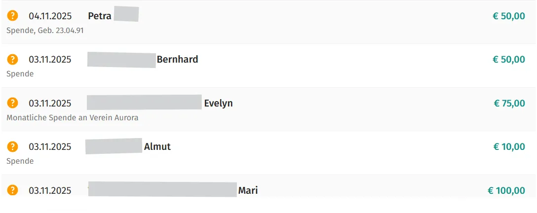 Hier Beispiele für Transaktionen unserer Dauerspender: